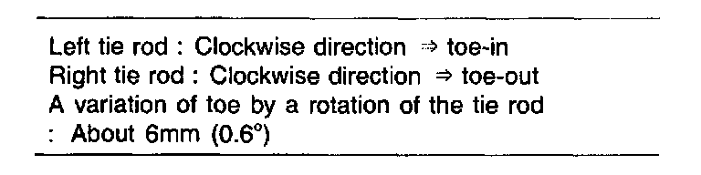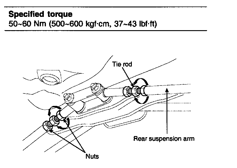 ^ Adjust the toe-in by fuming the tie rod end of the rear suspension arm.