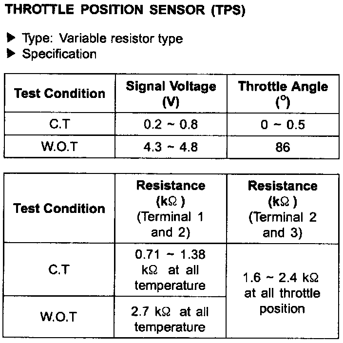 Throttle Position Sensor: Specifications