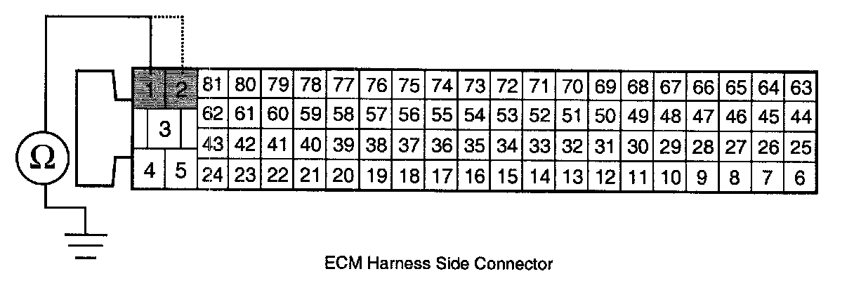2. TEST ECM CONNECTOR: Disconnect the ECM connector and visually check the ground terminals on ECM side and harness side for bent pins or poor contact pressure. If problem is found, repair it.