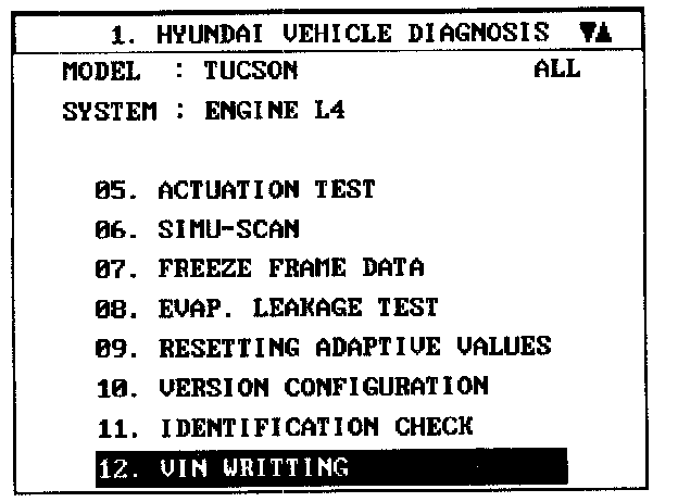 2. Select "VIN WRITING".