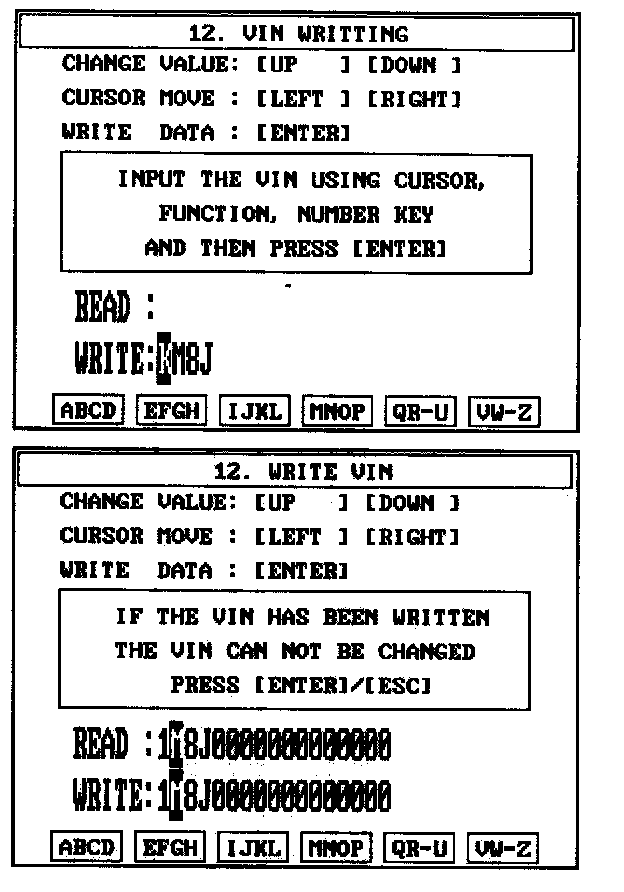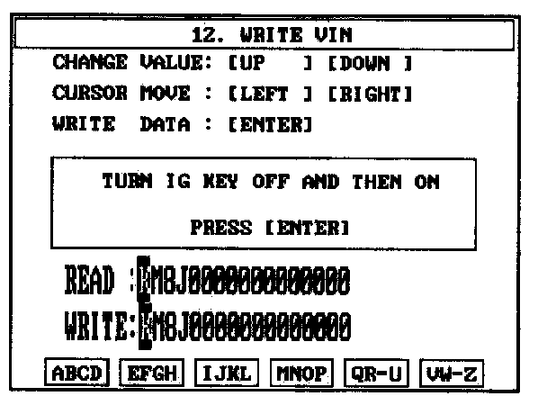4. Write the VIN with cursor, function and number keys.