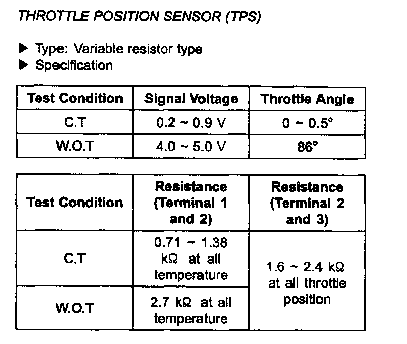 Throttle Position Sensor: Specifications