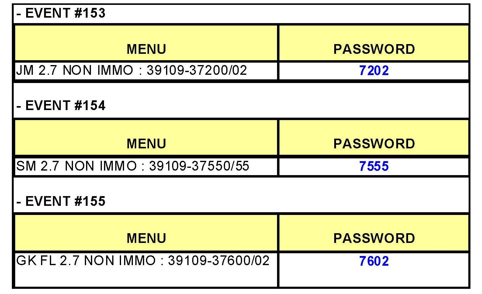 7. After the Current ROM ID is displayed, select the appropriate Update Event between "#153, #154 and #155."