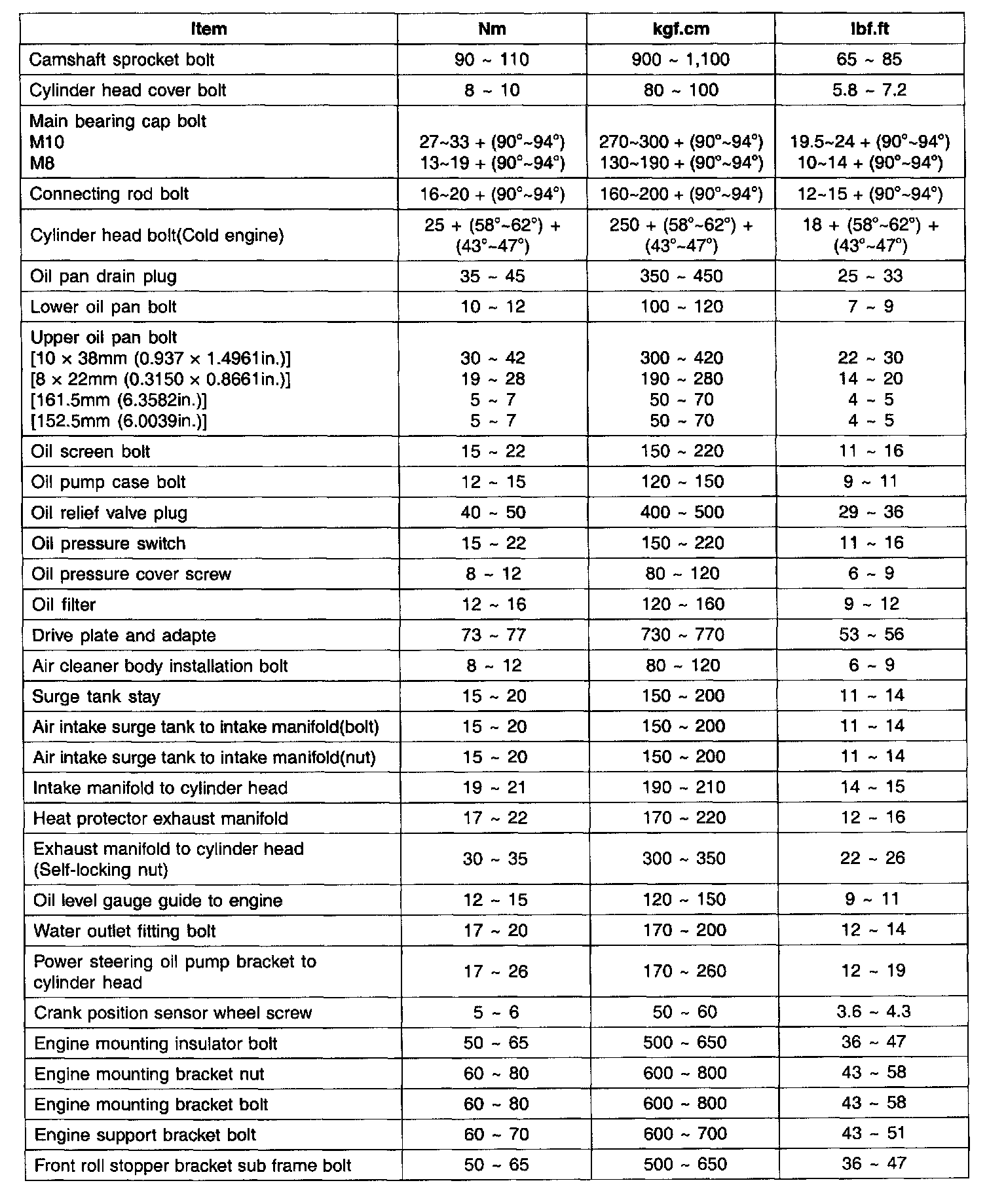 Home >> Hyundai >> 2006 >> Tucson V6-2.7L >> Repair and Diagnosis >> Specifications >> Mechanical Specifications >> Engine >> System Specifications >> Tightening Torque