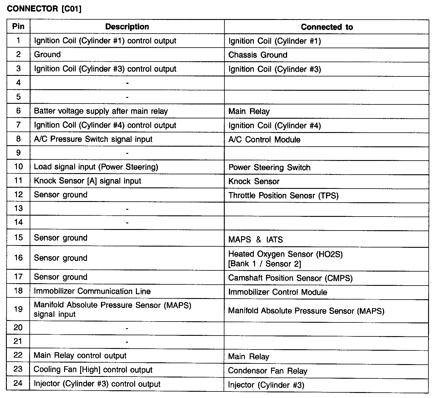 ECM TERMINAL FUNCTION - CONNECTOR [C01]