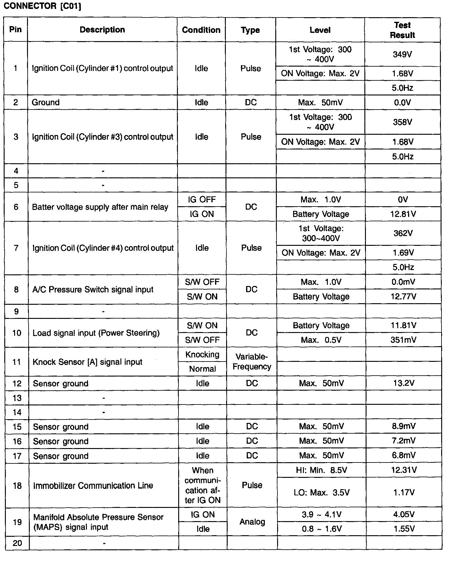 ECM Terminal Function (M/T) - Connector [CO1] Part 3: