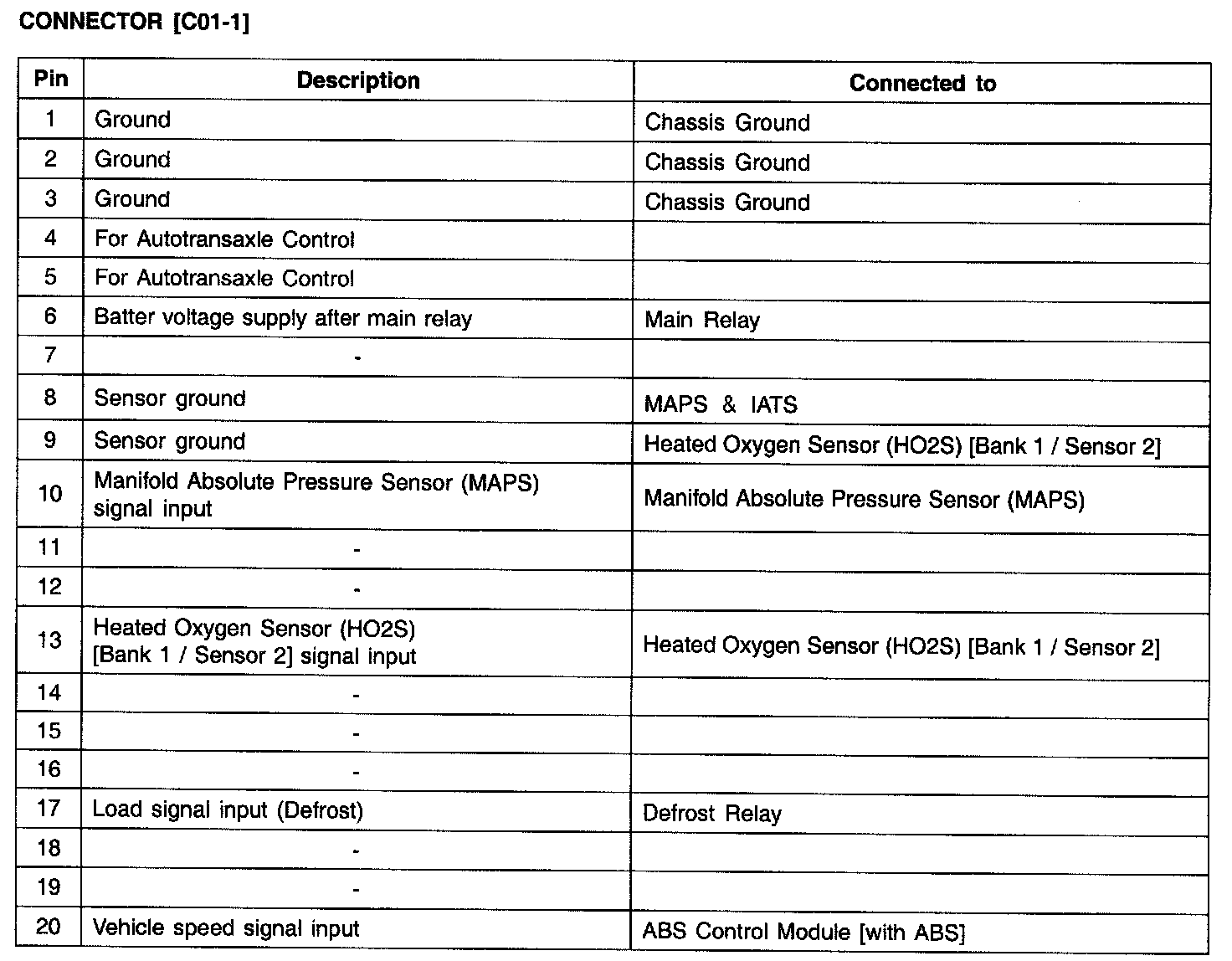 PCM TERMINAL FUNCTION - CONNECTOR [C01-1]