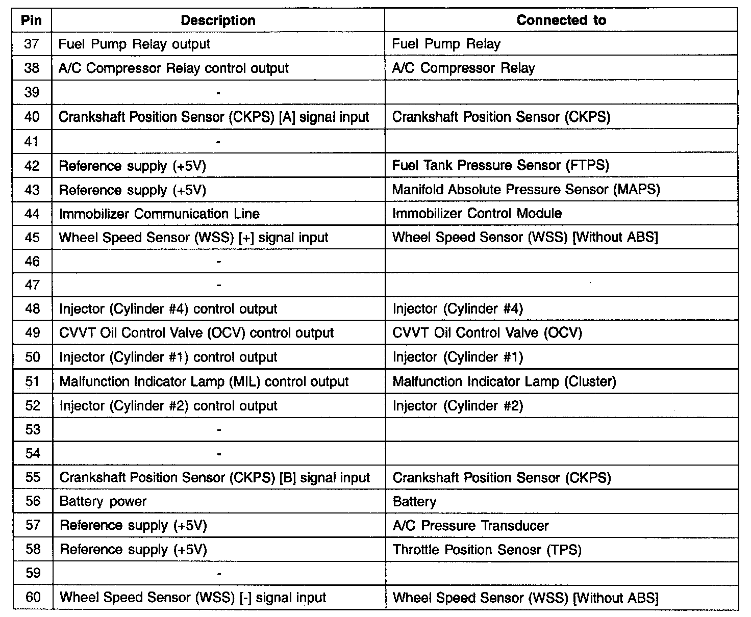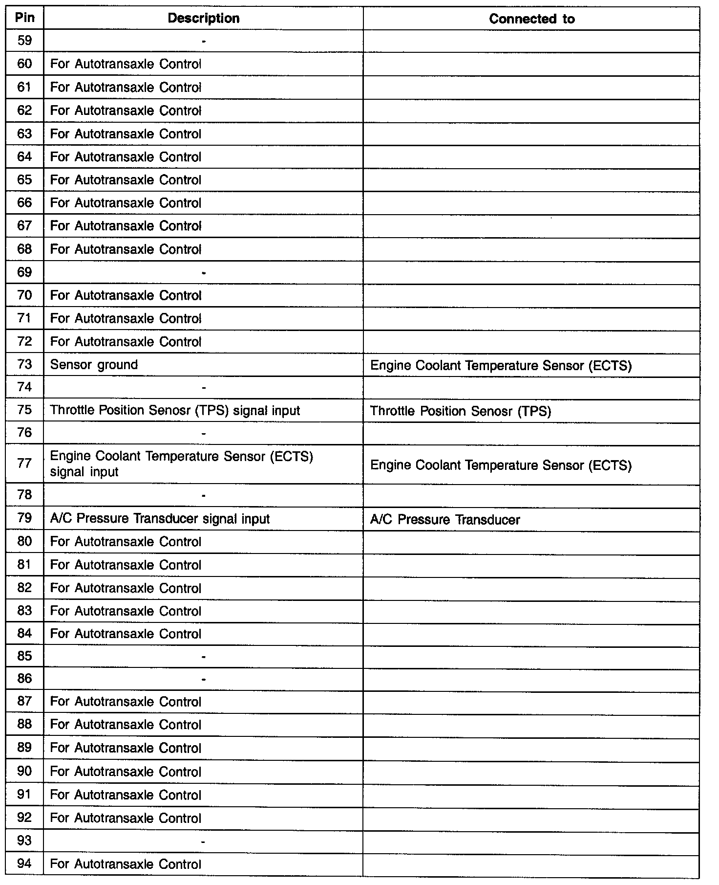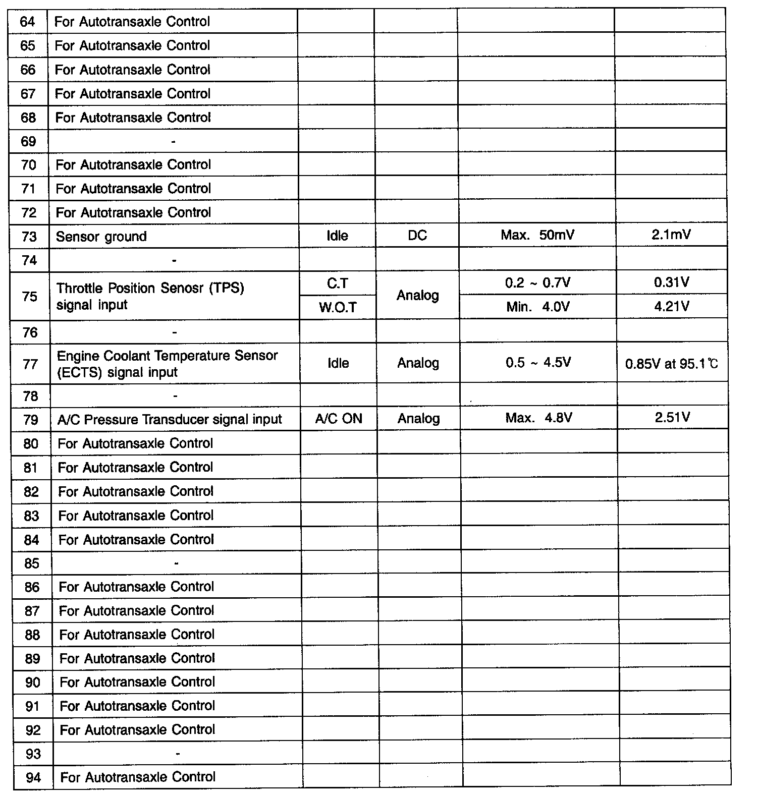 PCM Terminal Function (A/T) - Connector (C01-1) Part 2:
