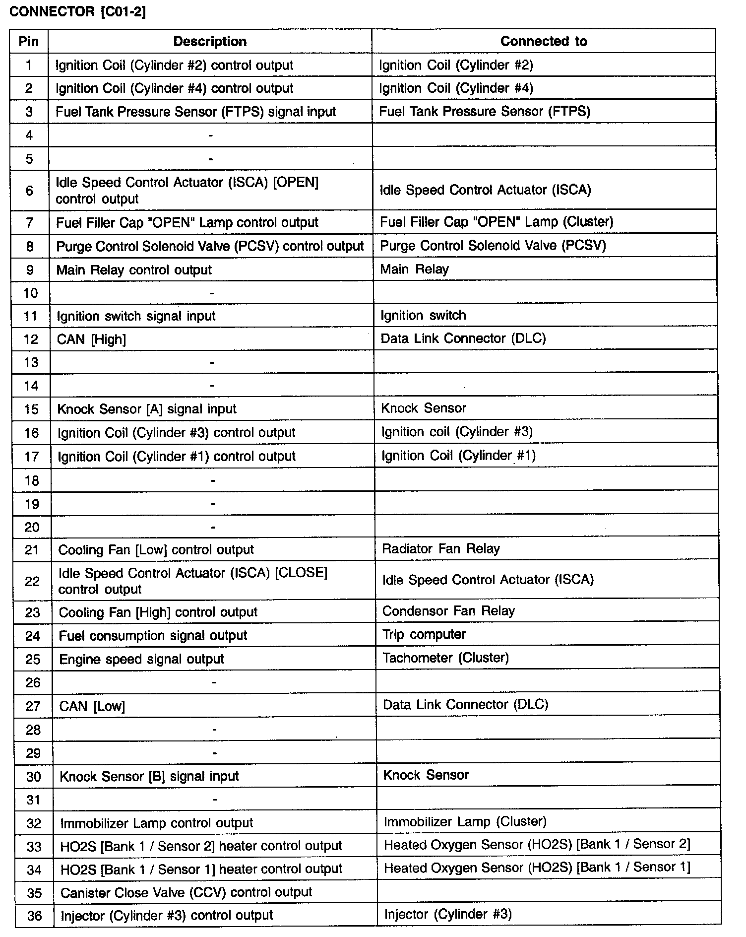 PCM TERMINAL FUNCTION - CONNECTOR [C01-2]
