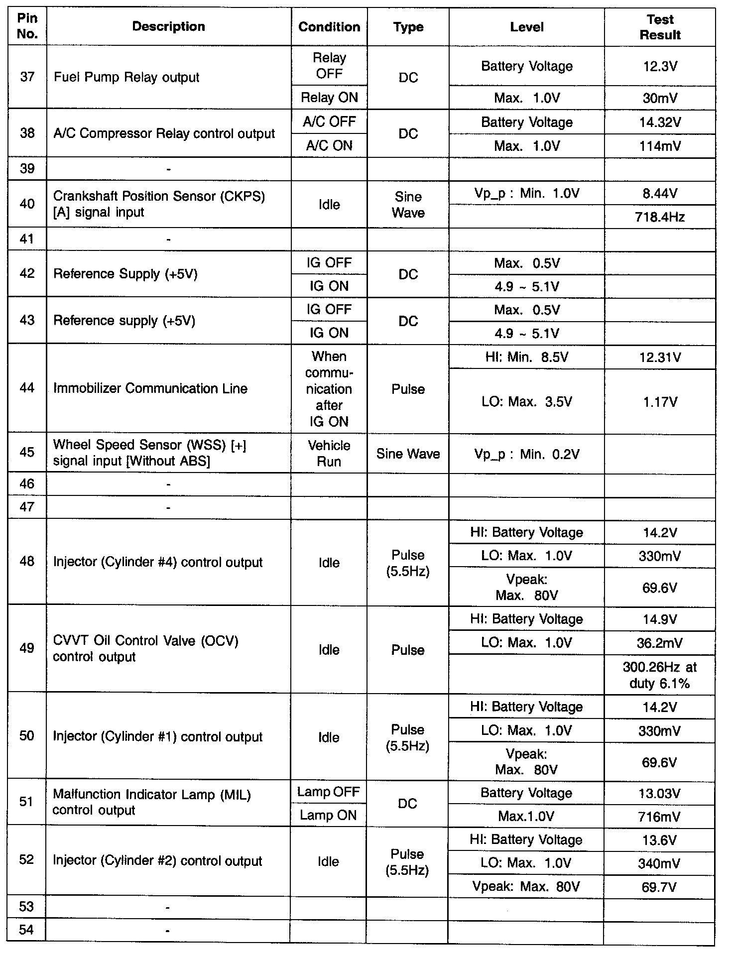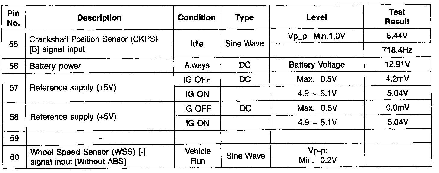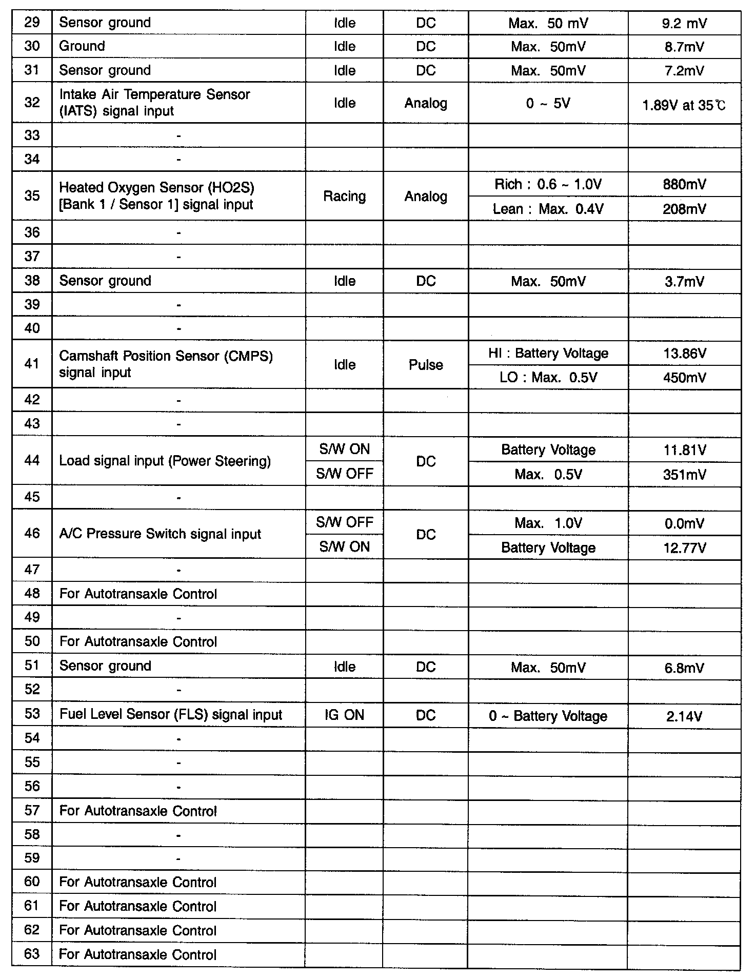 PCM Terminal In/Out Signal - Connector (C01-2) Part 4: