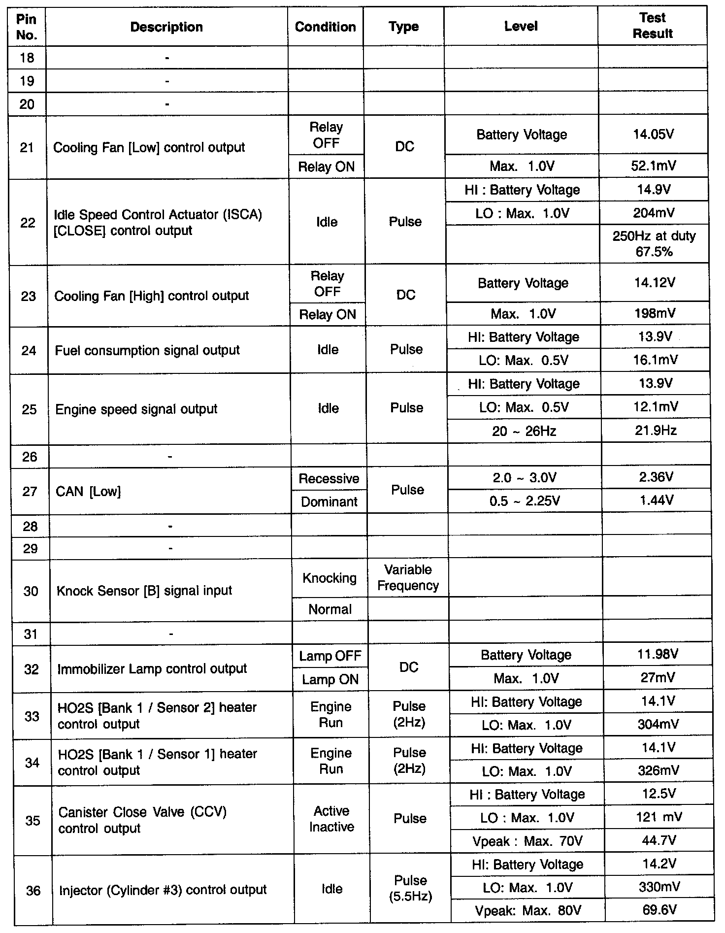 PCM Terminal In/Out Signal - Connector (C01-1) Part 3: