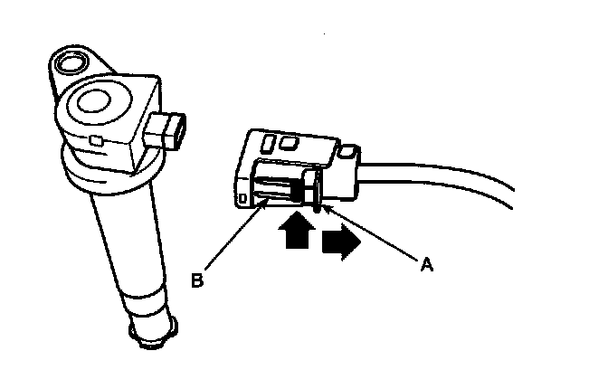 NOTE: When removing the ignition coil connector, pull the lock pin (A) and push the clip(B).