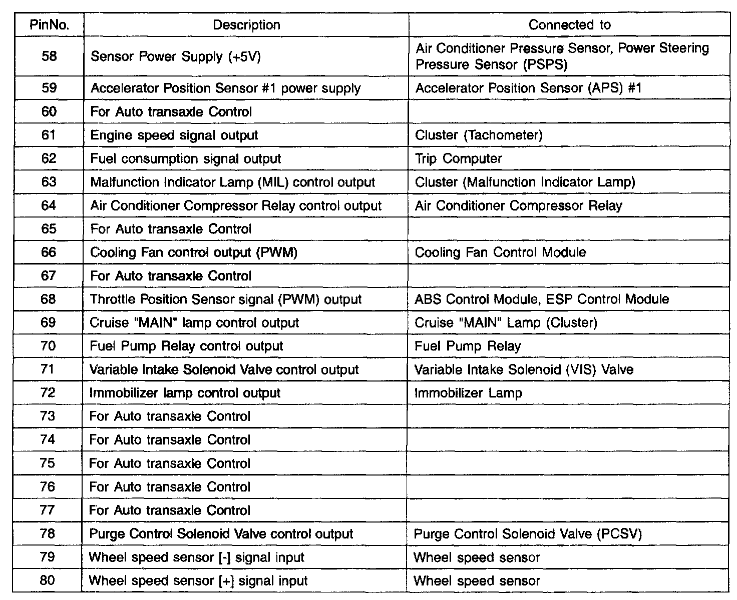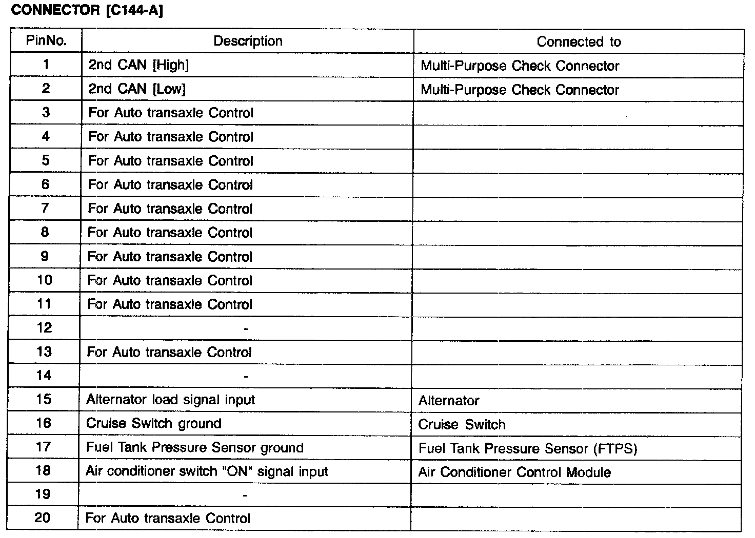 PCM Terminal Function - Connector [C144-A] Part 3: