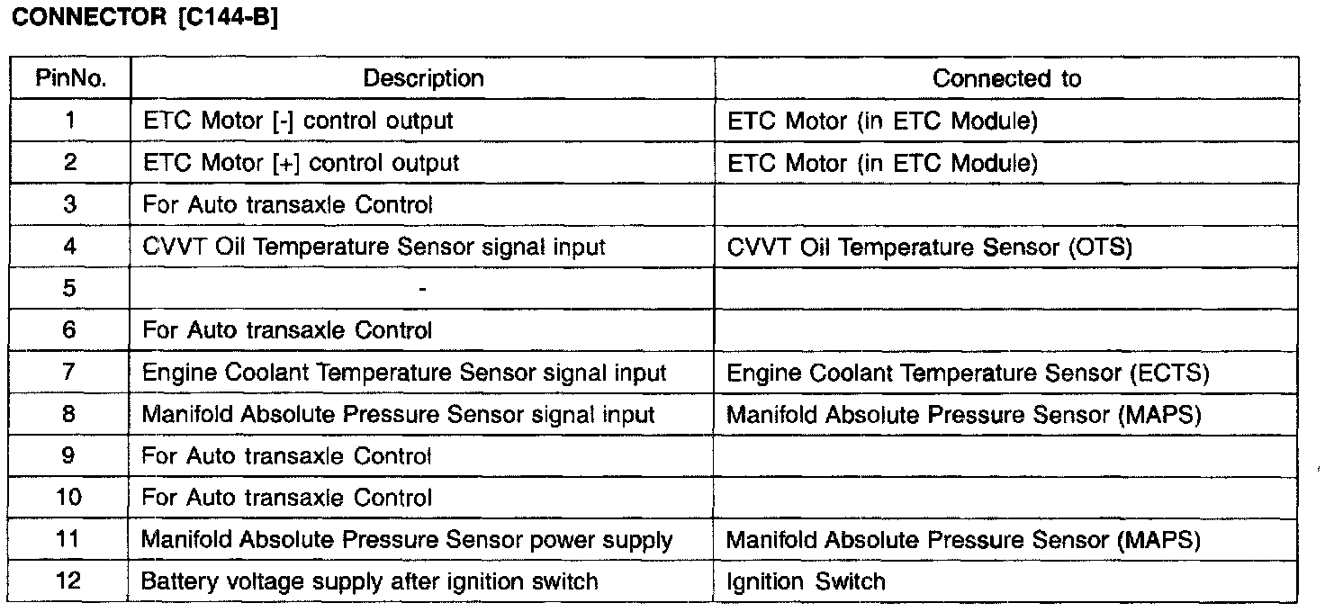 PCM TERMINAL FUNCTION - CONNECTOR [C144-B]