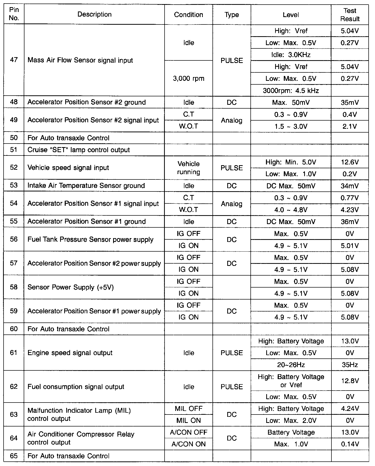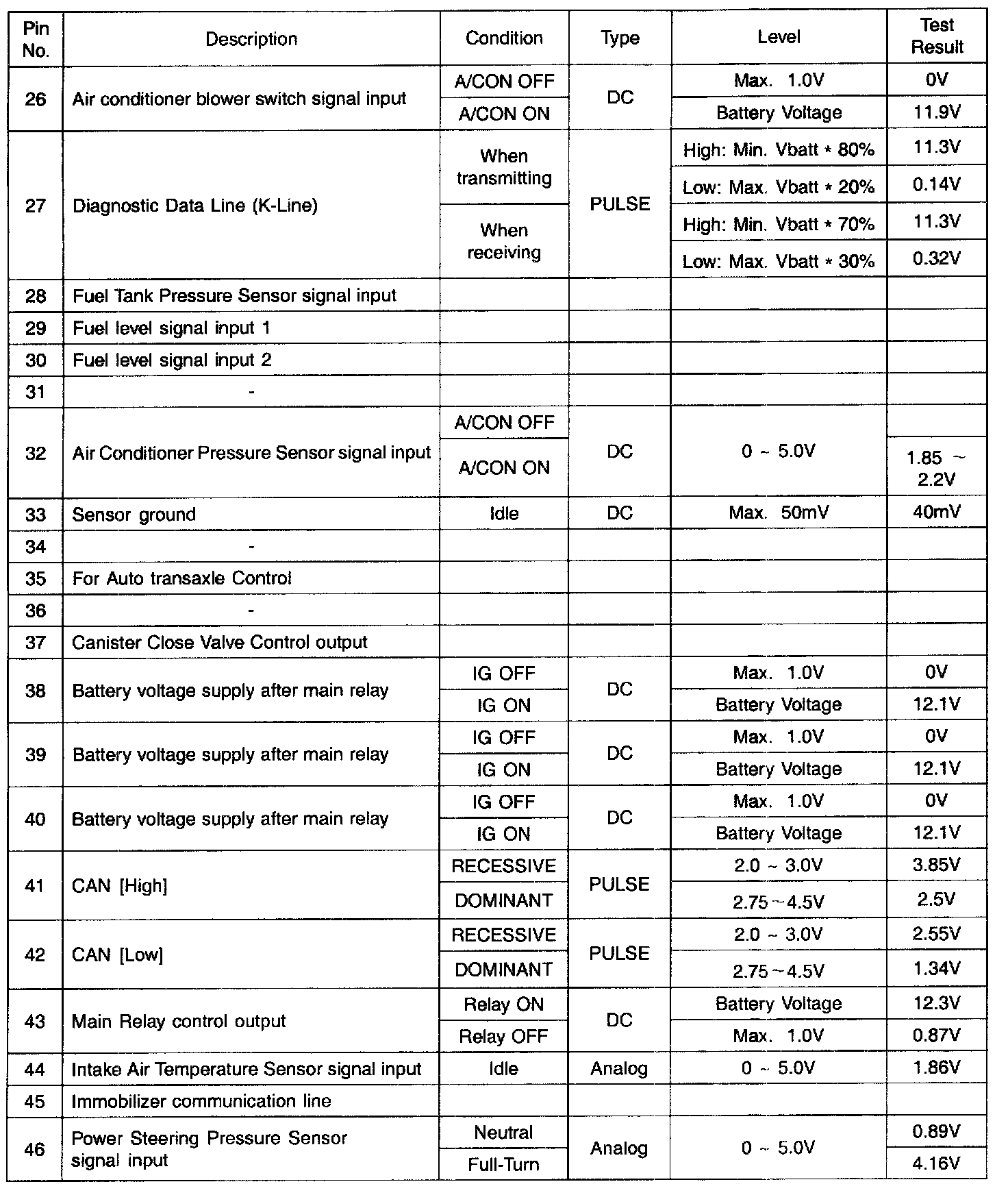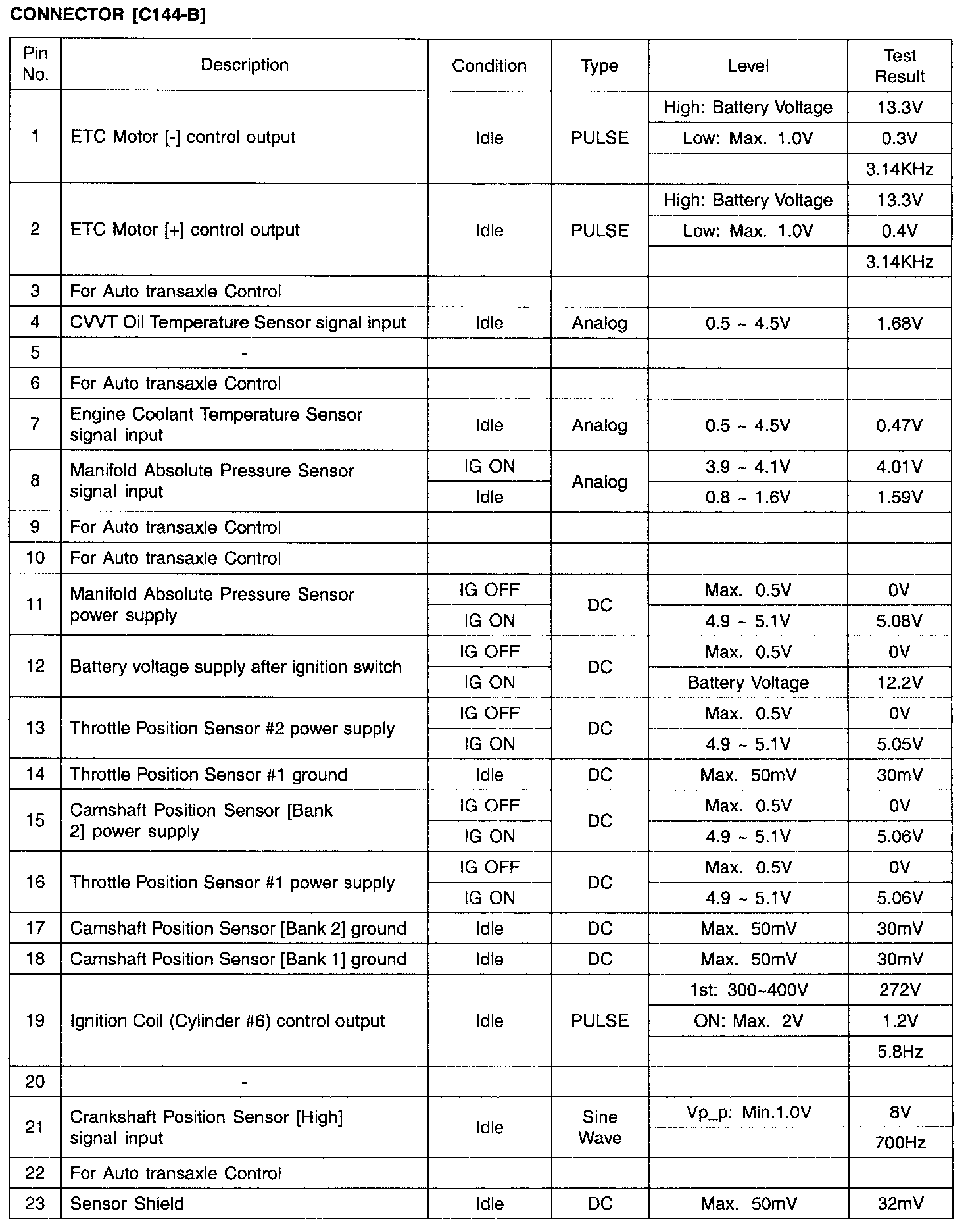 PCM TERMINAL INPUT/OUTPUT SIGNAL - CONNECTOR [C144-B]