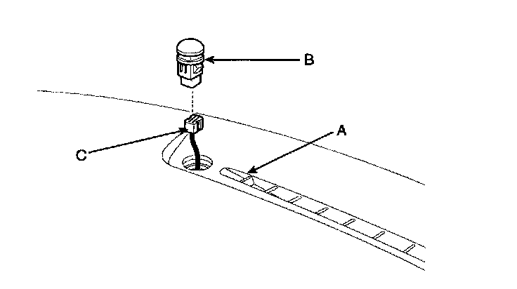 With the (-) driver, remove the photo sensor (B) from the left side of defrost nozzle (A).
