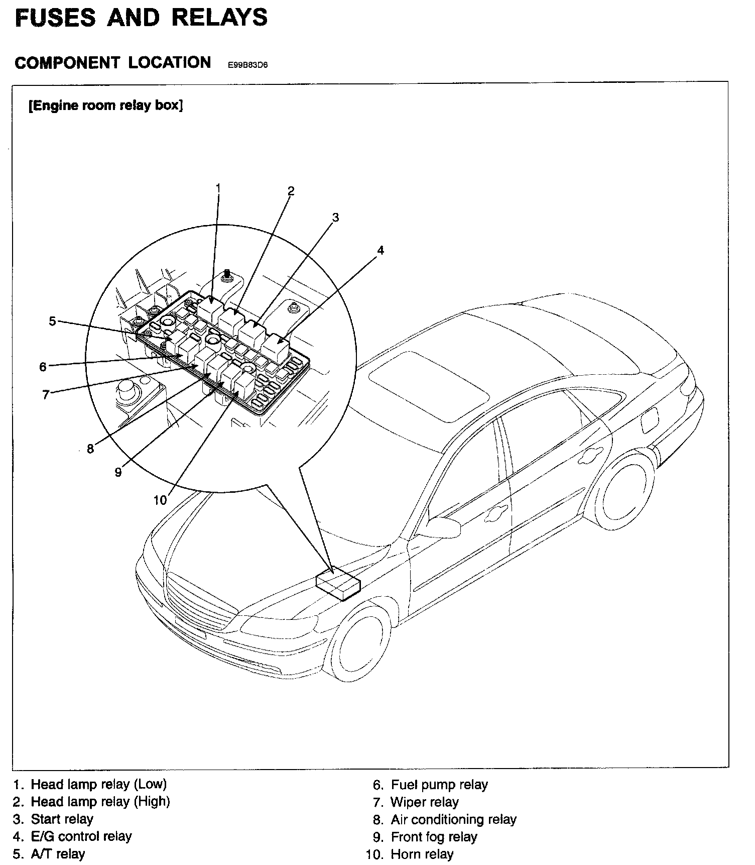Fuses And Relays [Engine Room Relay Box] - Component Location: