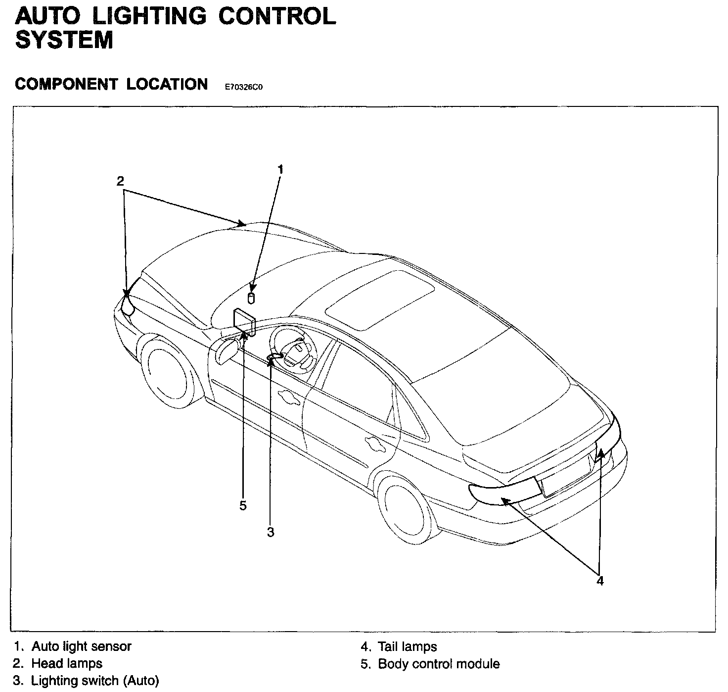Auto Lighting Control System - Component Location: