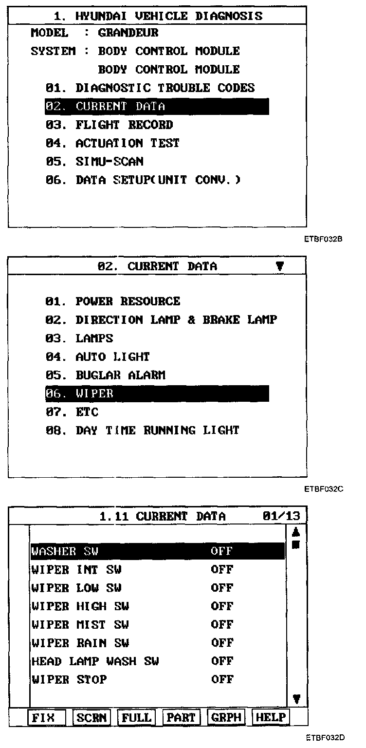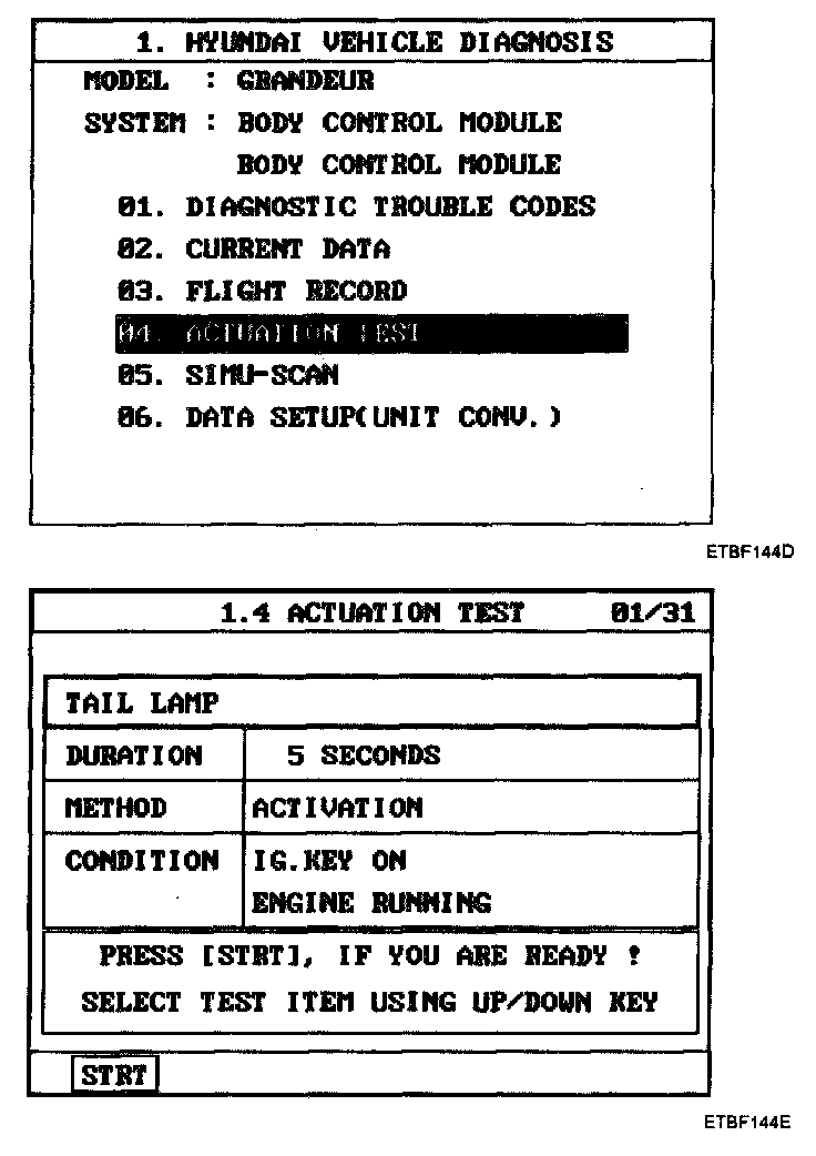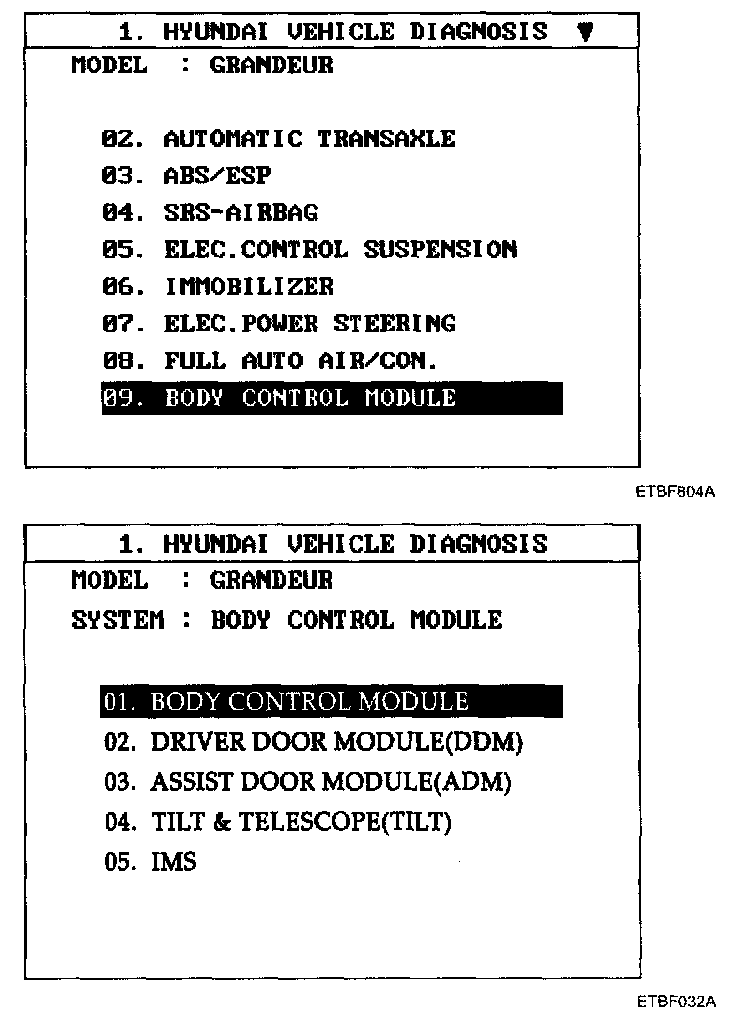 Home >> Hyundai >> 2007 >> Azera V6-3.3L >> Repair and Diagnosis >> Powertrain Management >> Computers and Control Systems >> Body Control Module >> Testing and Inspection >> Scan Tool Testing and Procedures >> BCM Diagnosis With Scan Tool