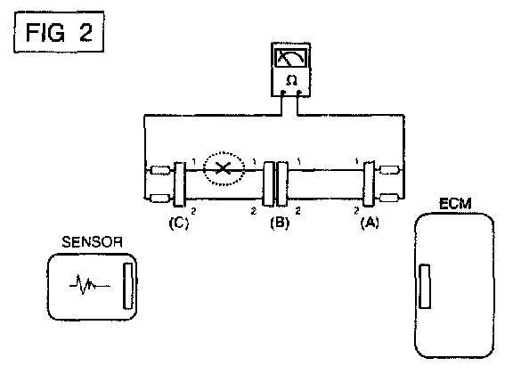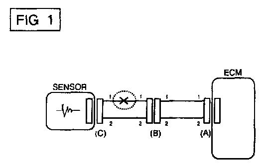 In [FIG.2] the measured resistance of line 1 and 2 is higher than 1 Mohm and below 1 ohm respectively.Specifically the open circuit is line 1 (Line 2 is normal). To find exact break point, check sub line of line 1 as described in next step.