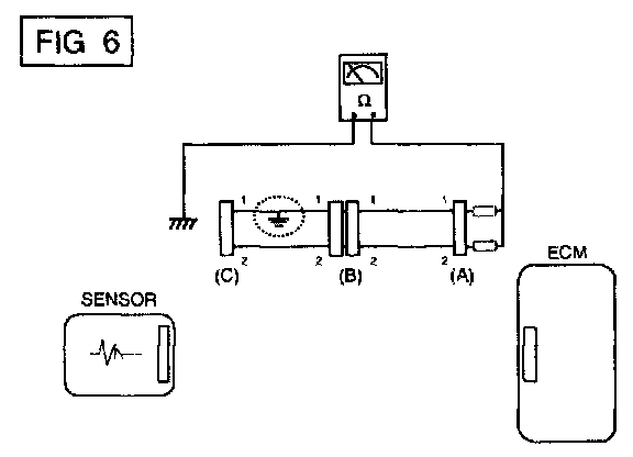 a. Disconnect connectors (A), (C) and measure for resistance between connector (A) and Chassis Ground as shown in [FIG. 6].