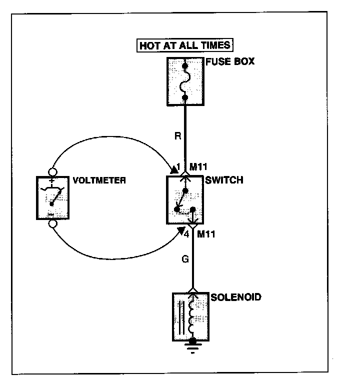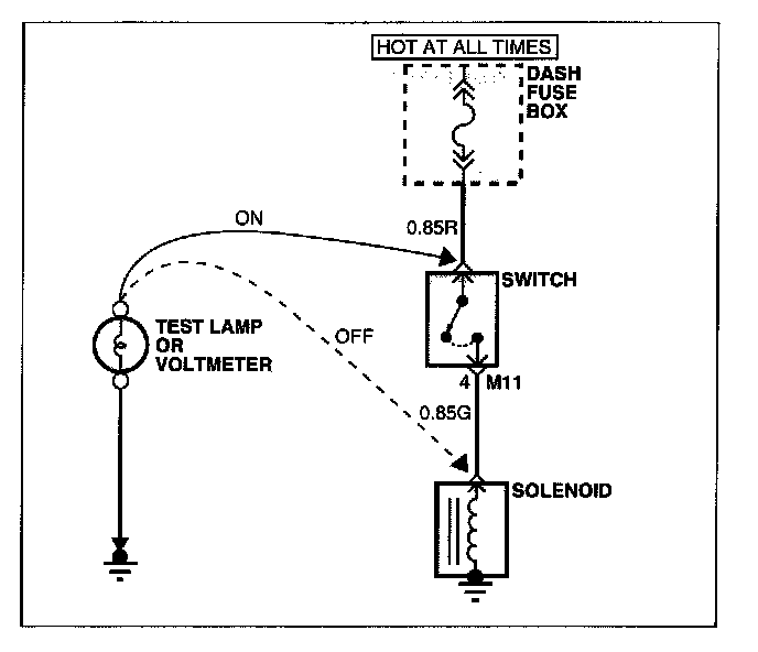 A. Connect one lead of a test lamp or voltmeter to a ground. if you are using a voltmeter, be sure it is the voltmeter's negative test lead you have connected to ground.
