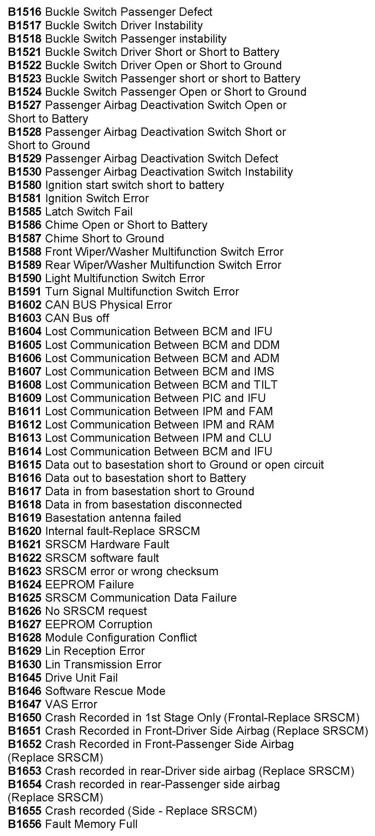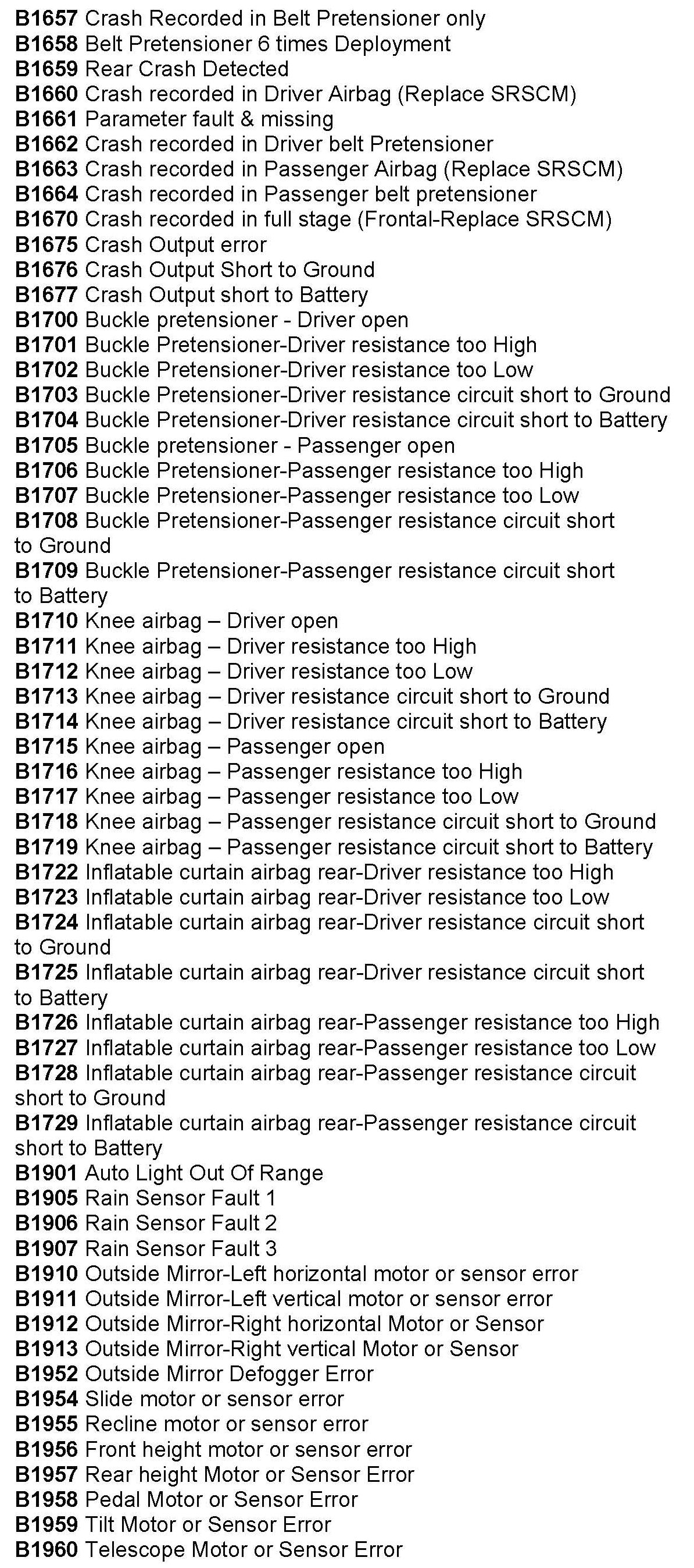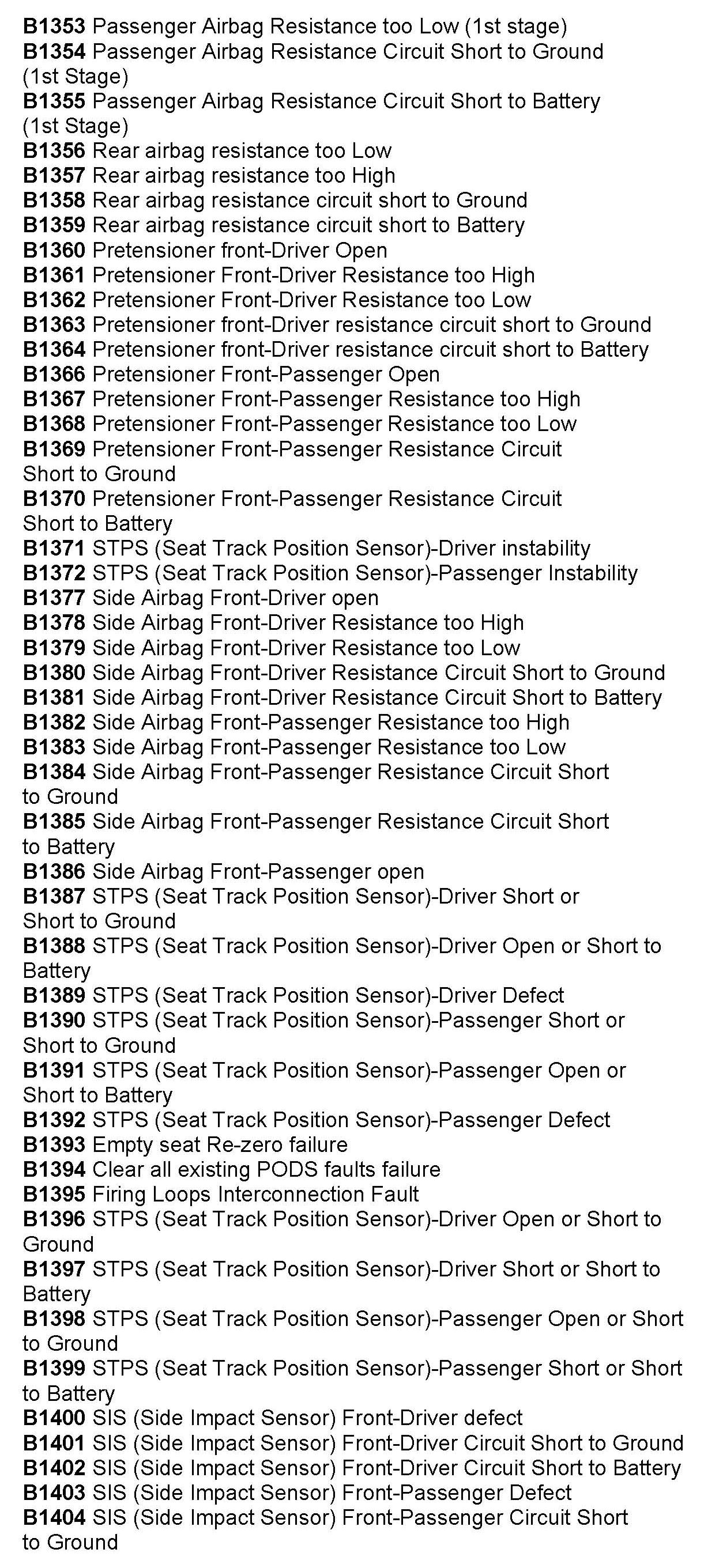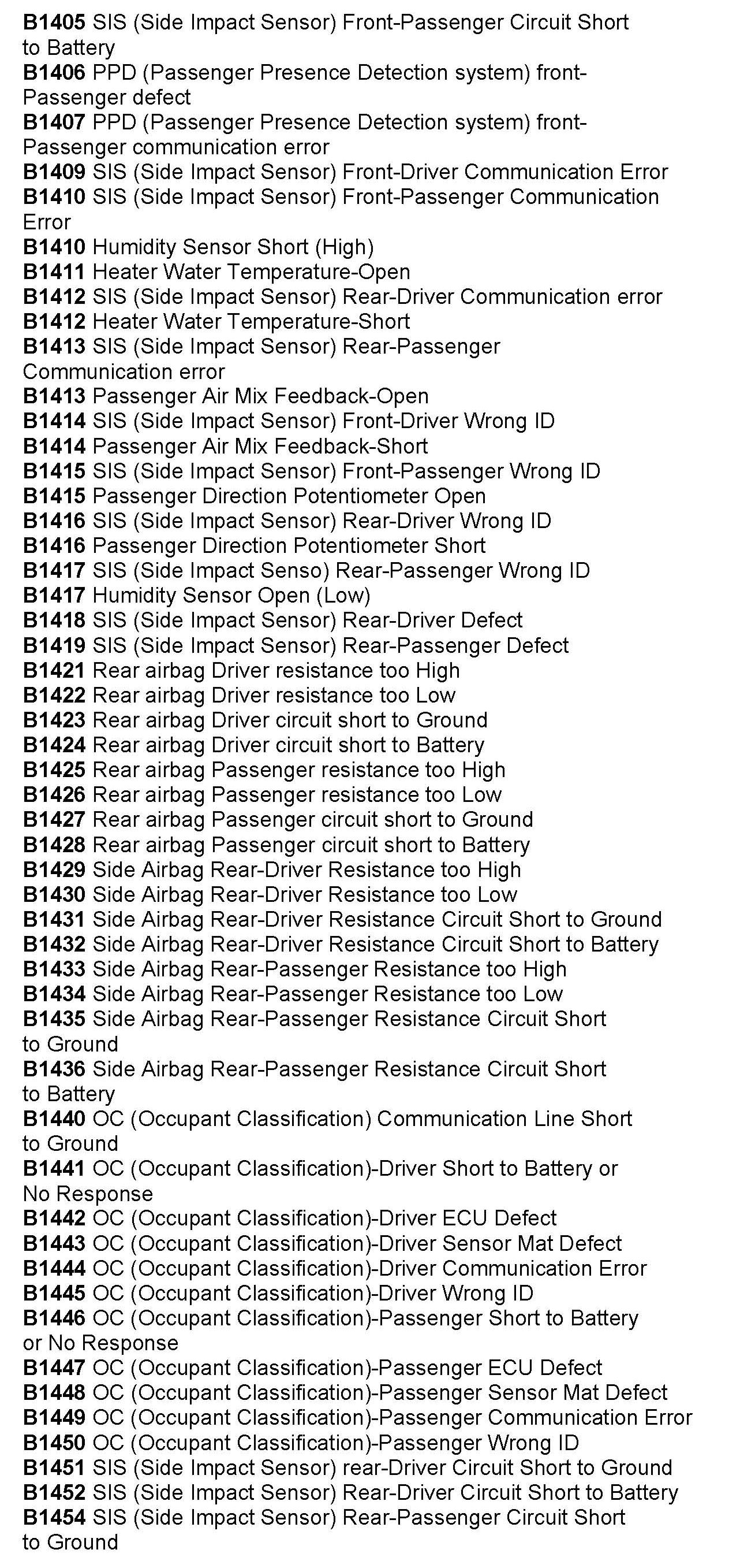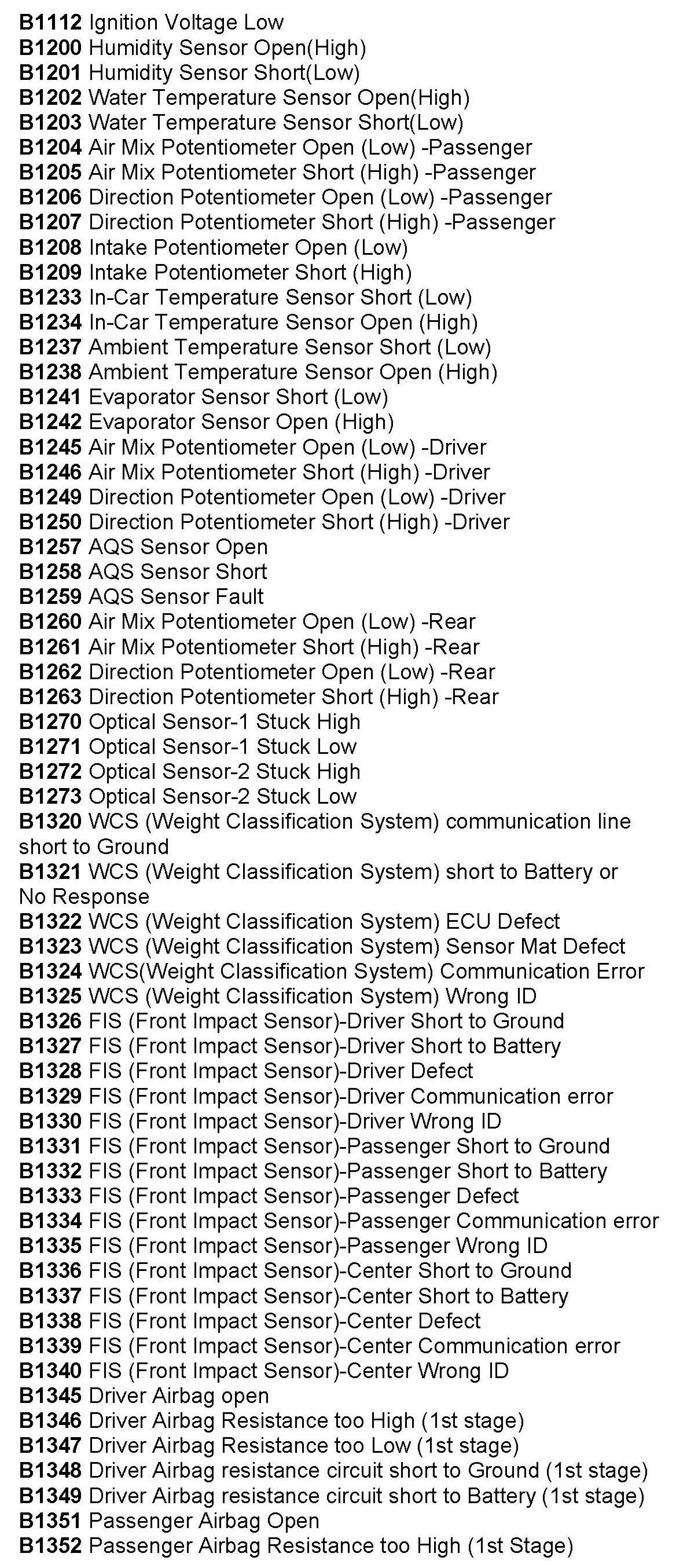 Computers/Controls - OBD-II Trouble Code Table
