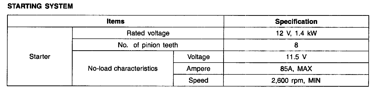 Starting System - Specification: