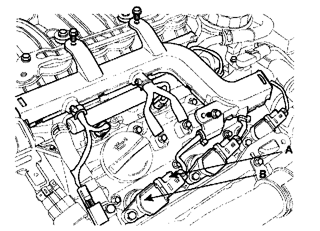 3. Remove the ignition coil connectors(A) and ignition coils(B).