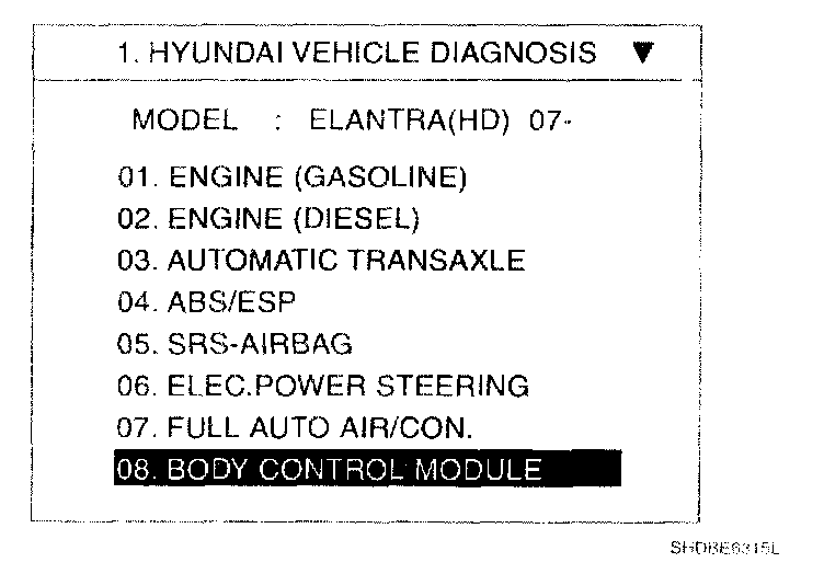 1. Select option "ELANTRA (HD)" and press ENTER