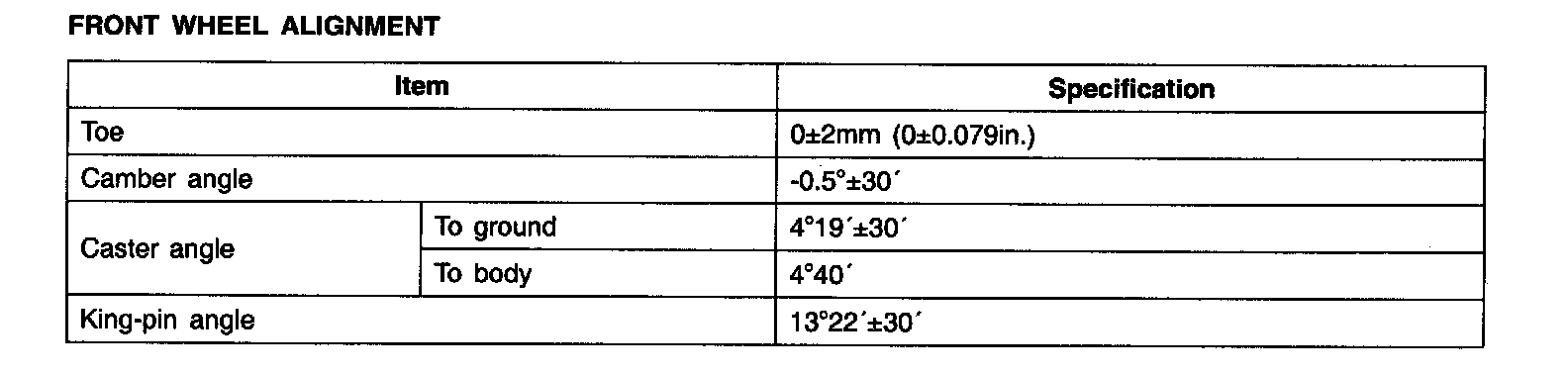 FRONT WHEEL ALIGNMENT: