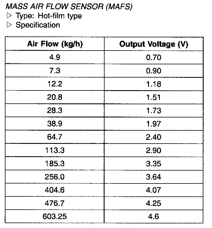 Mass Air Flow Sensor (MAFS) - Specification: