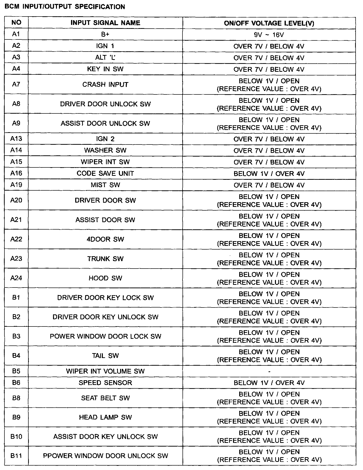 BCM Input/Output Specification