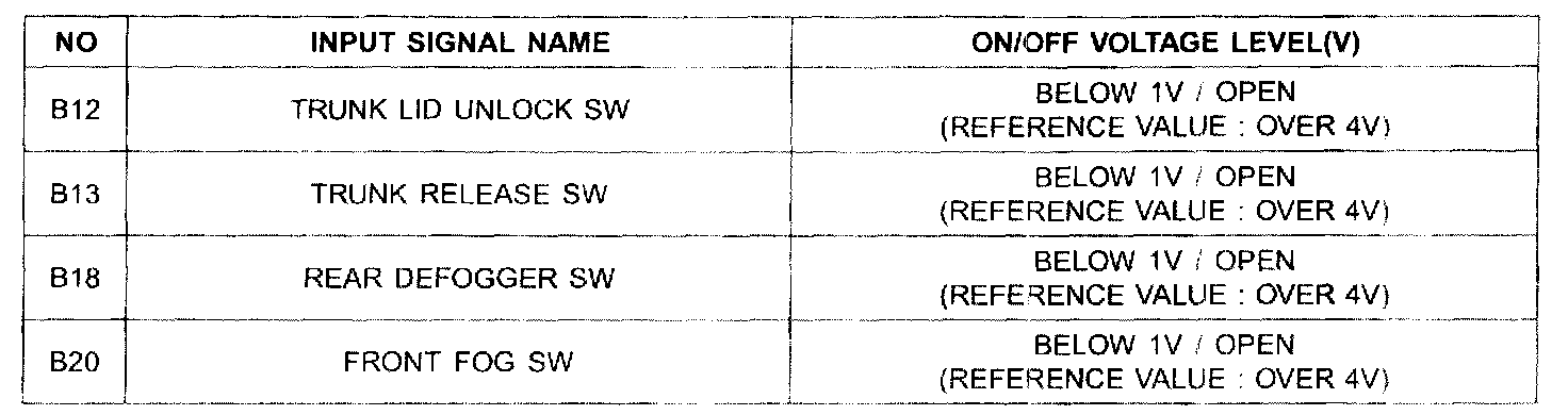 Pinout Values and Diagnostic Parameters