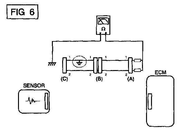 a. Disconnect connectors (A), (C) and measure for resistance between connector (A) and Chassis Ground as shown in [FIG. 6].