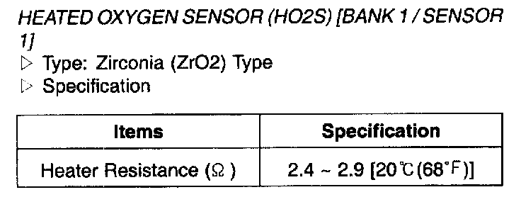 Heated Oxygen Sensor(HO2S) (Bank 1 / Sensor 1) - Specification: