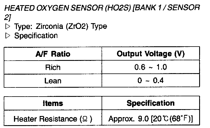 Heated Oxygen Sensor(HO2S) (Bank 1 / Sensor 2) - Specification: