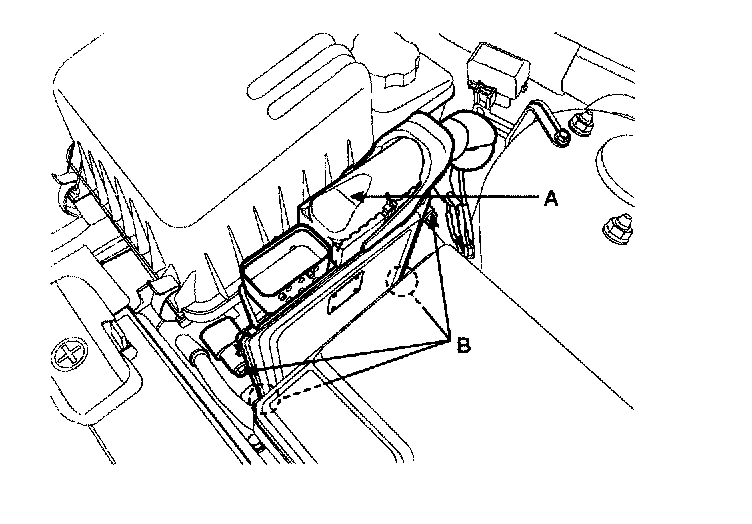 4. Unscrew the ECM mounting bolts (B) and remove the ECM from the air cleaner assembly.