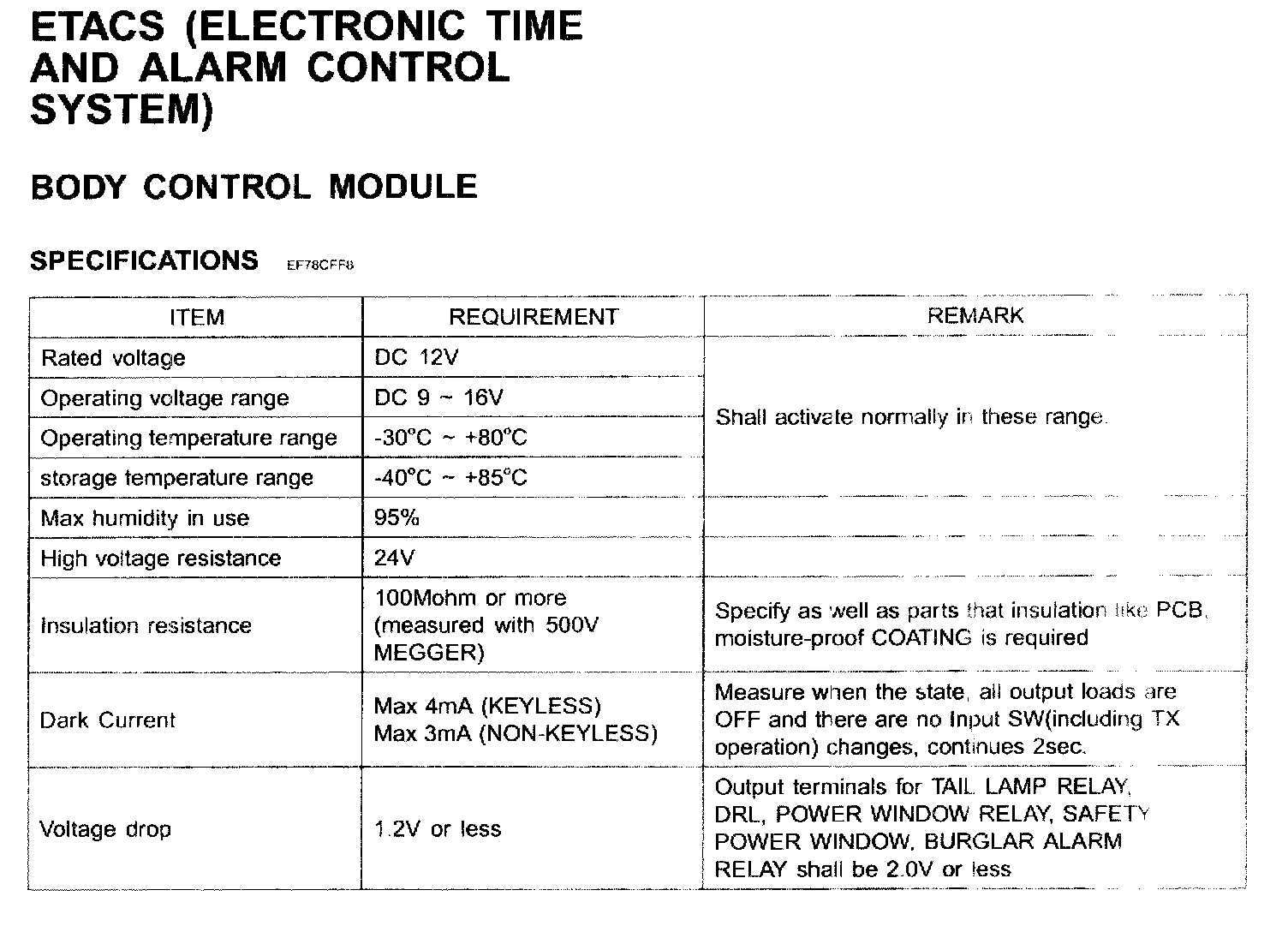 Body Control Module - Specifications (Part 1):