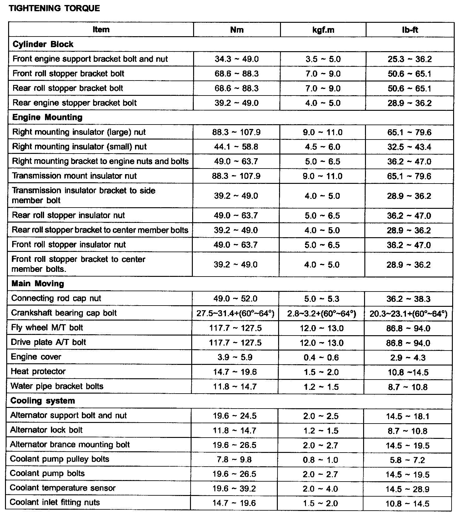 TIGHTENING TORQUE: