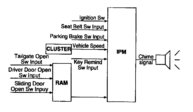 The chime is activated when the parking brake is on, ignition switch is on RUN and speed vehicle is over 10 km/h.
