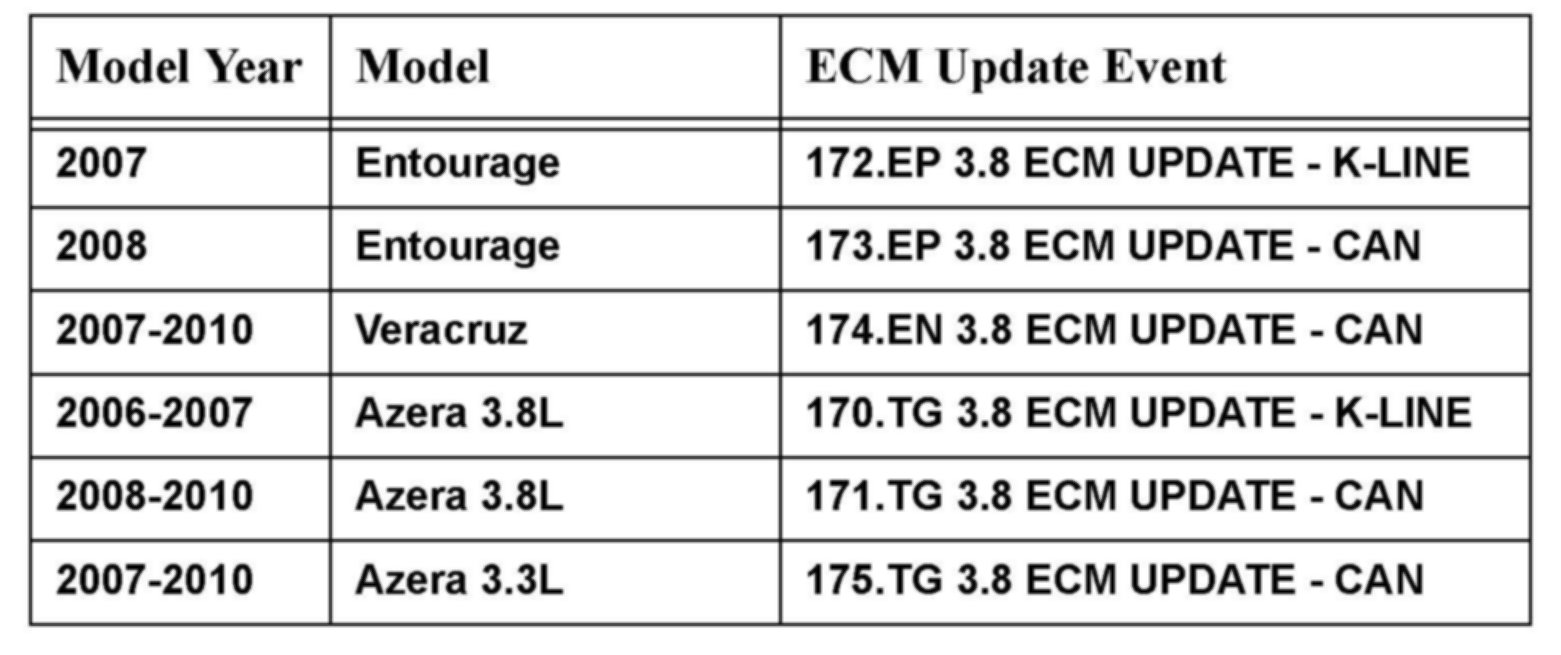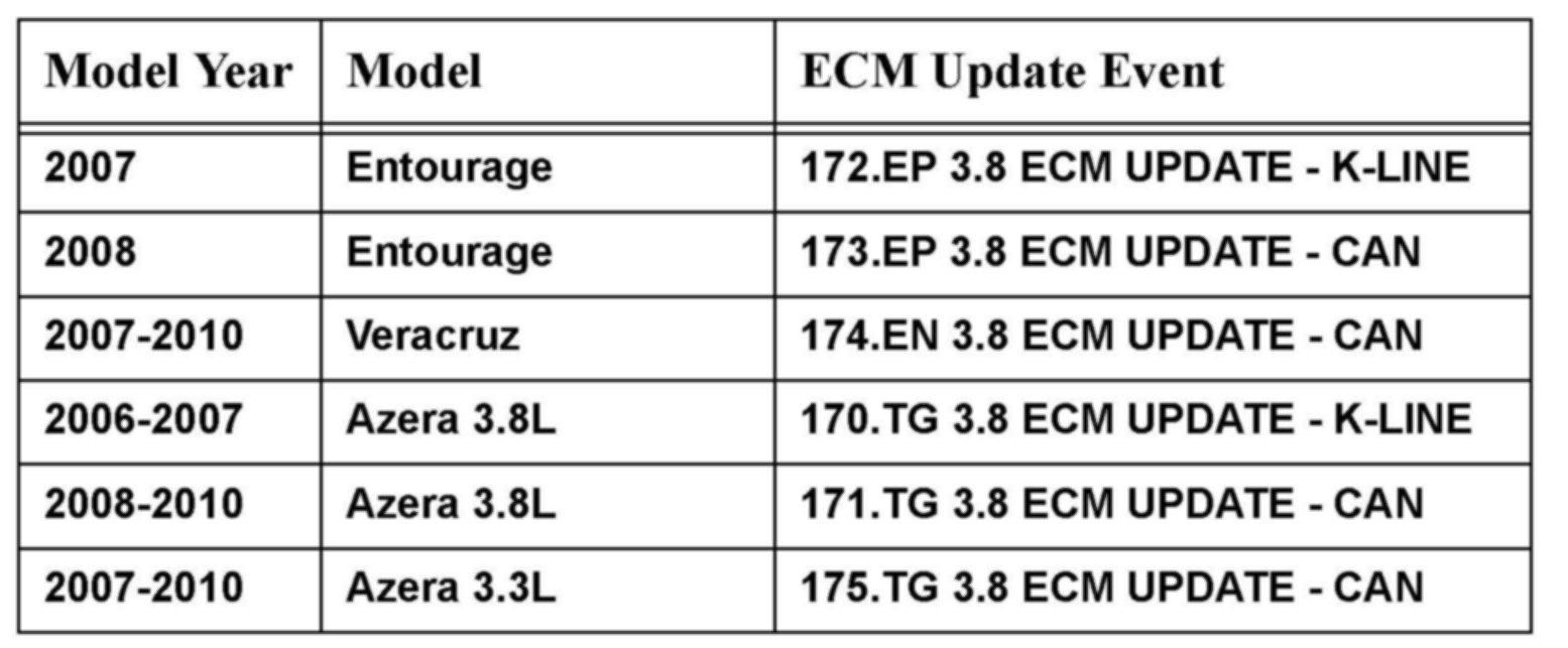 For 2007 Vercruz after the update is completed, perform the VIN writing procedure and/or immobilizer key teaching procedure on the affected vehicles with reference to the "3. ECM ROM ID INFORMATION".