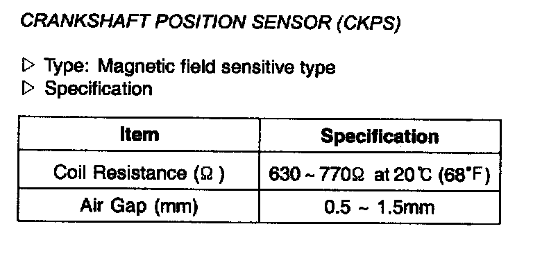 Crankshaft Position Sensor(CKPS) - Specification: