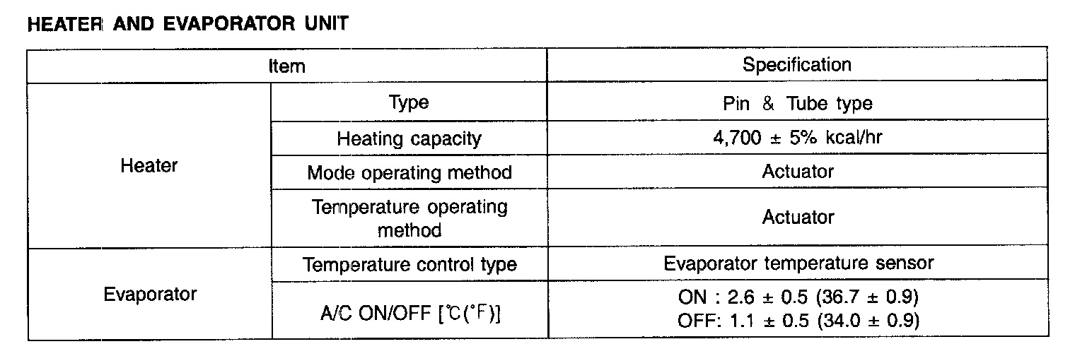 Specification - Heater And Evaporator Unit: