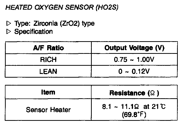 Heated Oxygen Sensor(HO2S) - Specification: