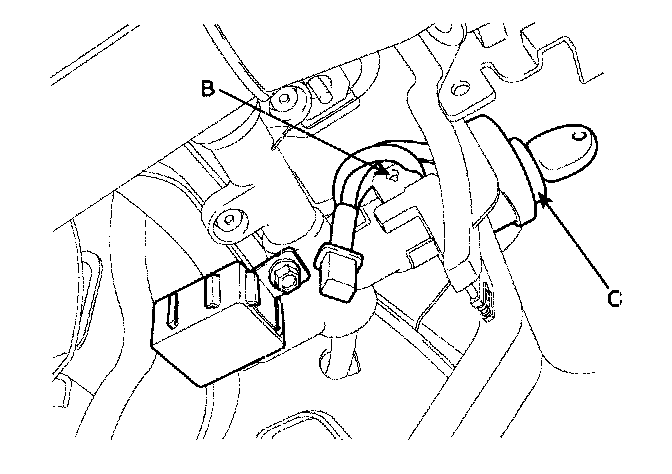 6. Remove the key lock cylinder (C) after pushing lock pin (B) with key ACC.