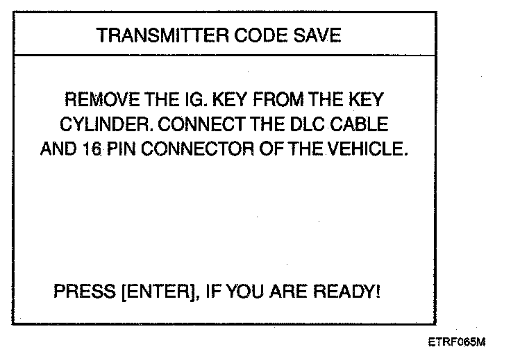 4. After removing the ignition key from key cylinder, push "ENTER" key to proceed to the next mode for code saving. Follow steps 1 to 4 and then code saving is completed.