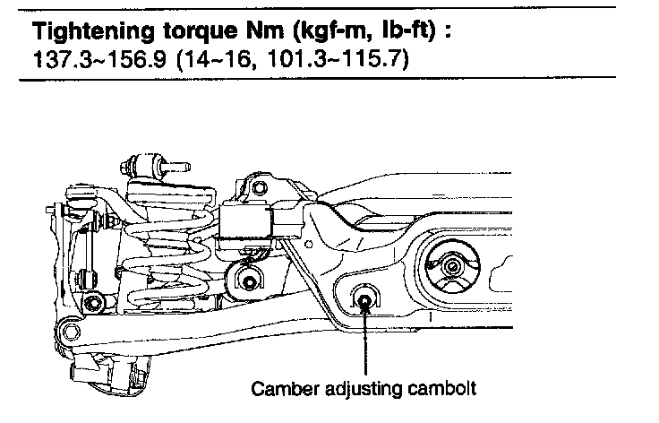 NOTE: Camber is pre-set at the factory and doesn't need to be adjusted. If the camber is not within the standard value, replace the bent or damaged parts.