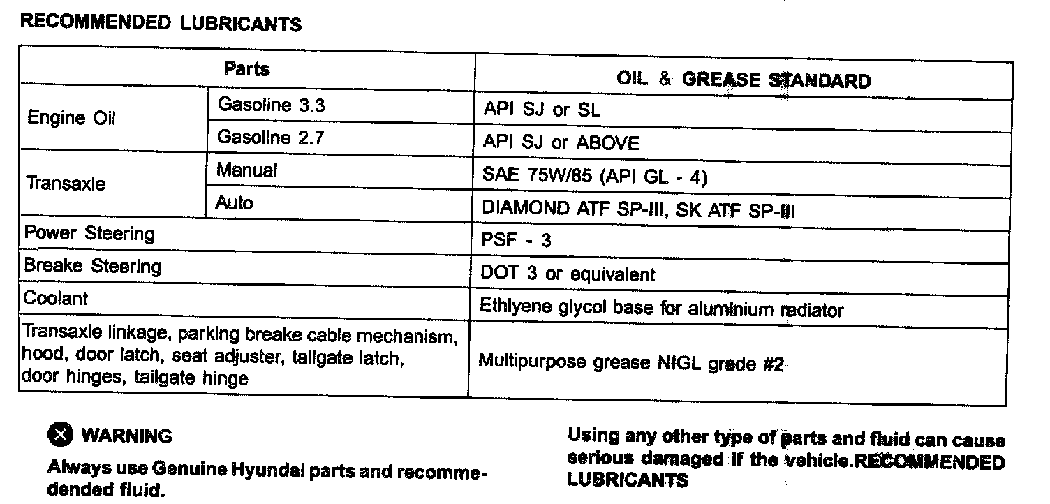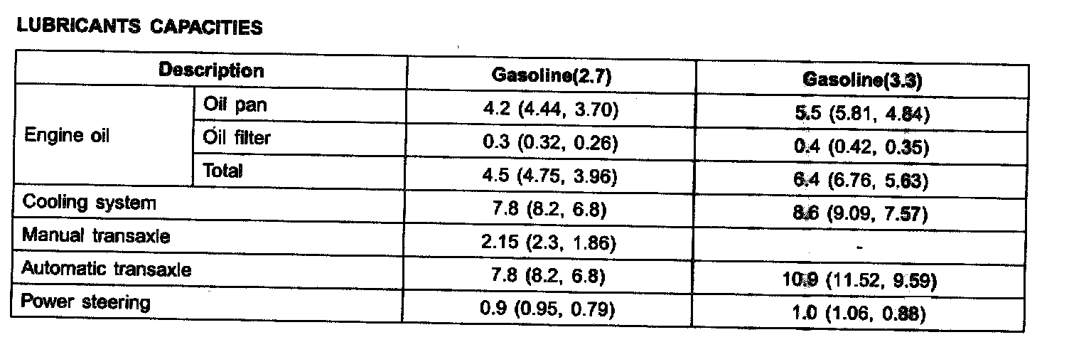 Lubricants Capacities: