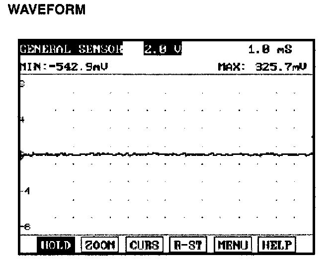 The knock sensor is installed at cylinder block to detect the vibration effectively during engine running. The above waveform shows the signal waveform of knock sensor when knock doesn't happen. Generally, knock signal has more noise than other sensor.